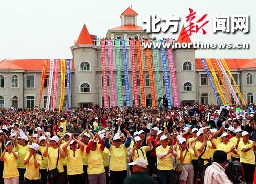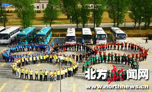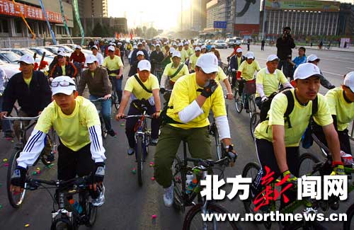 5月1日6時(shí)許,來到自行車首府一日游的集合地新華廣場(chǎng)時(shí),報(bào)名參加自行車首府一日游的500名隊(duì)員已經(jīng)到場(chǎng)。身穿紅、黃、藍(lán)、綠、黑奧運(yùn)五環(huán)顏色T恤的隊(duì)員個(gè)個(gè)精神抖擻。做完熱身運(yùn)動(dòng),檢查了一遍車輛后,隊(duì)員們根據(jù)所穿衣服的顏色組成隊(duì)列,等候出發(fā)的命令。隨著一聲令下,隊(duì)員爭(zhēng)先恐后地出發(fā)了。