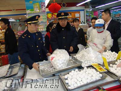 中廣網(wǎng)呼和浩特3月1日消息(記者文偉 通訊員李健 楊諾)為了讓市民安全的歡度元宵節(jié),春節(jié)過后,內(nèi)蒙古呼和浩特市工商局組織執(zhí)法力量對元宵節(jié)市場進行了全面檢查,這次檢查主要檢查經(jīng)銷元宵的攤點是否證照齊全,對“三無”元宵一律下架處理。