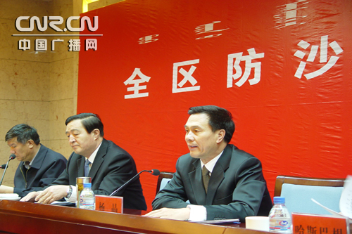 內(nèi)蒙古自治區(qū)副主席雷?額爾德尼同志就全區(qū)防沙治沙作出全面部署,并同內(nèi)蒙古14個(gè)盟市領(lǐng)導(dǎo)簽定了防沙治沙工作責(zé)任狀。