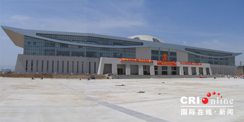 國際會議展覽中心正在為內(nèi)蒙古自治區(qū)成立60周年大慶進(jìn)行最后的收尾工作。(記者 王猛攝影)