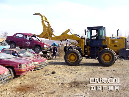 中廣網(wǎng)呼和浩特10月31日消息 (記者阿都?xì)J、通訊員紀(jì)明國 付靜茹 )10月30日,內(nèi)蒙古扎蘭屯市25臺已到報廢年限的出租汽車隨著鏟車的強(qiáng)力碾壓,在運輸管理部門的監(jiān)督下實施強(qiáng)制報廢。