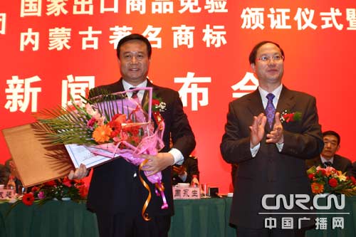 內蒙古自治區(qū)副主席余德輝向眾環(huán)集團頒發(fā)“內蒙古著名商標”牌匾