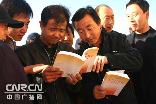 農(nóng)民爭(zhēng)讀十七大報(bào)告讀物(馬立峰 攝)