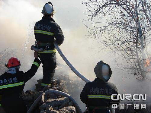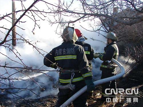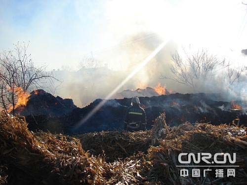 中廣網(wǎng)呼和浩特11月26日消息 (記者阿都?xì)J 通訊員王保國(guó))11月26日上午,內(nèi)蒙古阿榮旗那吉屯農(nóng)場(chǎng)水庫(kù)隊(duì)五馬架村2家草垛連著起火,危及周?chē)鷶?shù)戶民房和草垛,消防官兵快速出動(dòng)排除險(xiǎn)情。