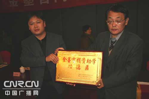 中廣網(wǎng)呼和浩特11月30日消息(記者鄭穎)2007年11月29日上午,內(nèi)蒙古已故副省級(jí)離休干部金墨言同志的子女遵照老人的遺囑,將16.9160萬(wàn)元撫恤金全部捐贈(zèng)給內(nèi)蒙古希望工程。根據(jù)老人子女的要求,內(nèi)蒙古青少年發(fā)展基金會(huì)將用這筆撫恤金資助91名貧困大、中、小學(xué)生。金墨言同志捐贈(zèng)的撫恤金,是2007年內(nèi)蒙古青少年發(fā)展基金會(huì)收到的最大一筆個(gè)人捐款。