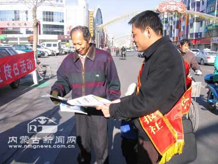 “12·4”是全國(guó)法制宣傳日,今年法制宣傳日的主題是“弘揚(yáng)法治精神,推進(jìn)依法治國(guó)”。當(dāng)日,內(nèi)蒙古法制報(bào)社的職工走上街頭發(fā)放普法材料,宣傳法律知識(shí)和法治精神,提高廣大市民的法律意識(shí)。