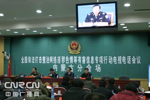 中廣網(wǎng)呼和浩特1月23日消息(記者鄭穎)1月22日,內(nèi)蒙古自治區(qū)依法打擊網(wǎng)絡(luò)淫穢色情等有害信息專項行動電視電話會議在呼和浩特市舉行,就2008年內(nèi)蒙古依法打擊整治網(wǎng)絡(luò)有害信息專項行動進行了全面部署。
