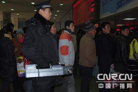 近日,由于春節(jié)臨近,鐵路客流明顯比平時增加。為防止旅客攜帶鞭炮等易燃易爆易腐蝕的危險物品進站上車,呼和浩特鐵路公安將2臺防爆新式武器——便攜式量子鼻炸藥探測儀與兩臺探測有效范圍方圓50米的遠程炸藥探測儀在呼和浩特火車站投入使用,共同為春運防爆工作助陣。據了解,價值為38萬元人民幣一臺可分辨炸藥的成分和種類的便攜式“量子鼻炸藥探測儀”具有輕便、操作簡單的特點,只需5秒鐘,偽裝隱藏的炸藥違禁品立即現出原形,探測率達到100%。