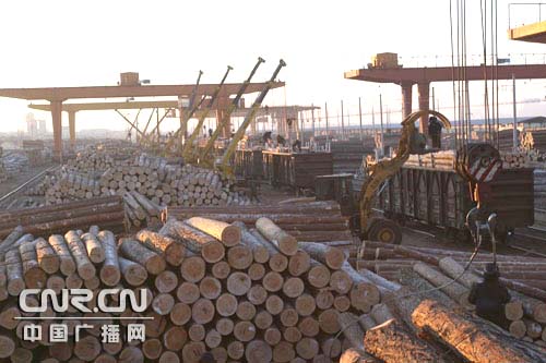 | 滿洲里口岸應(yīng)對運輸壓力增加落地原木(圖) |