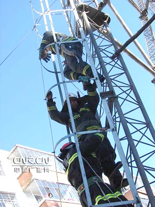 9時(shí)16分,大隊(duì)9名官兵趕到現(xiàn)場。到場后官兵們看到125米高的微波塔第一平臺(tái)上正站著一個(gè)人,他一只手扶在鐵架上,四處張望,并隨時(shí)都有跳塔的可能,情況十分危險(xiǎn)。 通過網(wǎng)通公司值班室人員現(xiàn)場了解,得知塔上是名男性,年齡約60歲左右。當(dāng)他在爬到半空中時(shí),被公司值班室人員發(fā)現(xiàn),但他不顧值班人員勸阻,執(zhí)意爬上了微波塔。