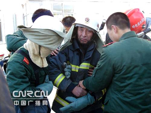 經(jīng)過3名消防官兵30余分鐘的攀爬和多次勸說,該老年男子終于答應(yīng)下來。但是由于他在塔上時(shí)間過久,再加上零下27度以上的嚴(yán)寒,人的整個(gè)身體基本凍僵,已無法依靠自己的力量安全回到地面。專勤班長劉先飛立即把自己的手套,棉戰(zhàn)斗服脫下為被營救者暖和身體。隨后,副中隊(duì)長張浩根據(jù)事先的方案在二名班長配合下攜帶安全繩和頭盔,他們一前、一中、一后保護(hù)這位老人下塔。