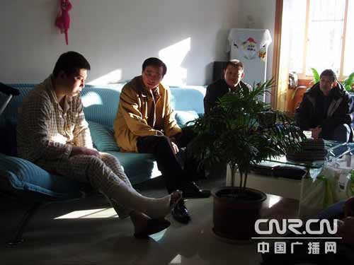 中廣網(wǎng)呼和浩特2月4日消息(記者鄭穎 通訊員張強、周軍)2008年2月2日,呼和浩特鐵路局工會主席曲永堂一行在包頭鐵路公安處領(lǐng)導的陪同下代表自治區(qū)、鐵路局看望了因公負傷的自治區(qū)勞動模范、全國優(yōu)秀人民警察張佩寧同志,在送去了慰問金和慰問品的同時也帶去了組織的關(guān)心和問候。