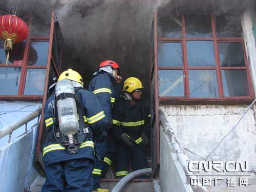 16日下午14時09分,消防一中隊迅速出動3臺水罐消防車15名官兵火速趕赴火場。為了給撲救火災(zāi)和搶救被困人員爭取更多的時間,指揮員在趕往事發(fā)地點(diǎn)途中立即部署了戰(zhàn)斗力量。到達(dá)現(xiàn)場,只見現(xiàn)場圍集大量群眾,吵雜聲呼喊聲混成一片,此時從二樓窗臺處不斷向外涌出大量的滾滾濃煙,在一旁受災(zāi)的家屬則不停的哭泣。消防官兵經(jīng)過簡單的詢問了解知情人得到火場信息,當(dāng)?shù)弥輧?nèi)被困人員仍未救出時,指揮員迅速采取“救人第一”的戰(zhàn)術(shù)原則,果斷下達(dá)作戰(zhàn)命令:第一戰(zhàn)斗小組由副中隊長王濤帶領(lǐng)兩名經(jīng)驗(yàn)豐富的戰(zhàn)斗員佩戴空氣呼吸器對屋內(nèi)被困人員進(jìn)行營救;第二小組由一班負(fù)責(zé)對搜救人員進(jìn)行水槍掩護(hù)并消滅室內(nèi)明火;第三戰(zhàn)斗小組負(fù)責(zé)立即疏散圍觀群眾。戰(zhàn)斗隨即展開,在營救被困人員的過程當(dāng)中,由于不知屋內(nèi)情況,加之室內(nèi)煙霧過大,能見度底,第一戰(zhàn)斗小組不時通過喊、摸、聽等方式進(jìn)行呼救被困人員。經(jīng)過緊張搜救,消防官兵在床下面發(fā)現(xiàn)了被困者,并成功的救出,隨后被趕來的120救護(hù)車緊急送往醫(yī)院。