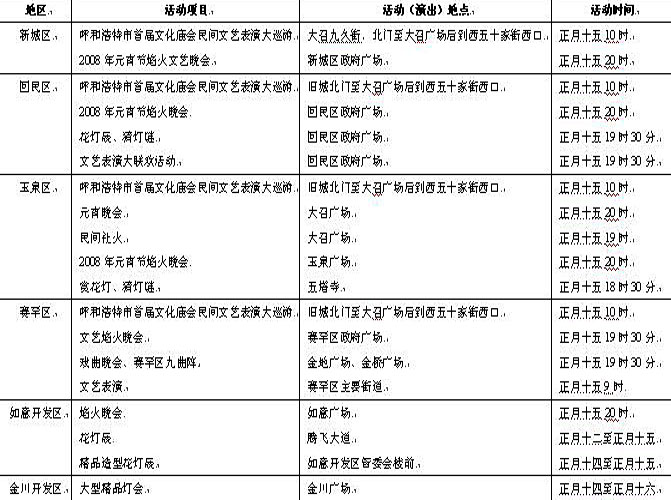 呼和浩特市元宵節(jié)文化部分活動(dòng)一覽表