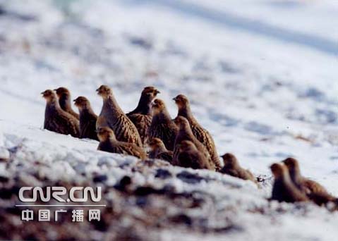 牙克石鳳凰山滑雪場附近的一群斑翅山鶉(別名沙半雞)