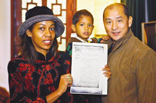 珍妮一家3口,珍妮手里是高祖父當(dāng)年所乘航船的船單復(fù)印件