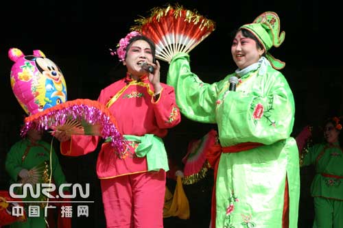 鄉(xiāng)親們登臺表演二人臺《五哥放羊》