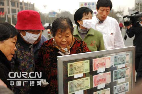 市民在人民銀行宣傳點辨別真?zhèn)稳嗣駧牛〝z影/彭川)