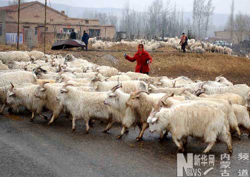 3月20日,在杭錦旗杭錦淖爾鄉(xiāng),村民趕著羊群撤離