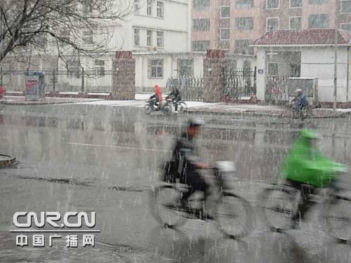 中廣網(wǎng)呼和浩特3月22日消息(記者文偉 通訊員任艷軍) 22日早晨8點多,突降大雪,大雪如鵝毛般從天而降。記者從內(nèi)蒙古氣象局了解到:此次降雪從巴彥淖爾市及以東地區(qū)普遍有小雨或雨夾雪。其中,鄂爾多斯市、包頭市南部、呼和浩特市、烏蘭察布市南部、錫林郭勒盟西部有小到中雨或雨夾雪。東北部地區(qū)有中雨夾雪或雪。阿拉善盟西部有揚沙或浮塵天氣。