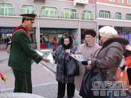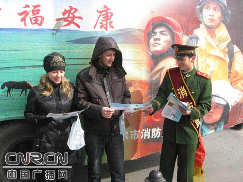 散發(fā)俄文消防知識(shí)傳單