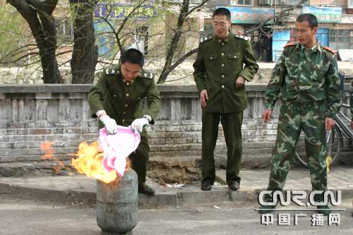 講座之后,來(lái)自呼和浩特消防特勤2中隊(duì)的消防戰(zhàn)士就煤氣罐起火、燃油起火等情況,現(xiàn)場(chǎng)演示了正確的滅火方法,干休所的武警官兵也現(xiàn)場(chǎng)試驗(yàn)操作。