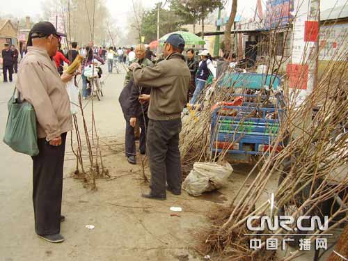 中廣網(wǎng)呼和浩特4月24日消息(記者文偉 通訊員紀(jì)明國)日前,在呼倫貝爾扎蘭屯市露天市場(chǎng)上一位來自河西街道辦事處嶺北村三組的村民科技示范戶樊有全,一邊為待售“搖錢樹”修枝剪杈一邊興致勃勃地介紹:今年果樹苗特別好賣,我拉來了580棵沙果樹苗,一上午就賣出490棵,我每棵樹苗能賺到10元左右,剛才一位本市的人給我送來購買一千棵沙果樹苗的定金,他明天就到我家去挖樹苗。我家現(xiàn)有1 2 3蘋果、黃太平、大秋果、海棠果等樹苗一萬五千多棵,我粗略地算了一下,今年我賣沙果樹苗就能收入一萬多元!現(xiàn)在,我們村有10多家和我的規(guī)模一樣大,收入都不錯(cuò),沙果樹苗是俺們農(nóng)民的“搖錢樹”、“綠色銀行”啊!