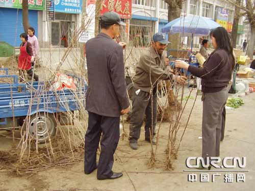 樊有全在市場(chǎng)上出售自己栽植的沙果樹苗