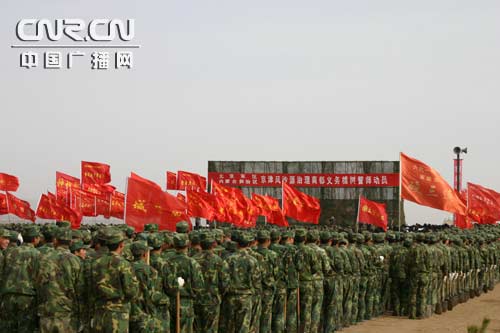 中廣網(wǎng)呼和浩特4月26日消息(記者文偉 內(nèi)蒙古臺杜少俊 烏蘭察布臺護群)北京軍區(qū)、內(nèi)蒙古軍區(qū)京津風沙源治理商都義務(wù)植樹誓師動員大會26日上午在商都縣七臺鎮(zhèn)舉行。誓師動員大會現(xiàn)場,彩旗飄揚。北京軍區(qū)、內(nèi)蒙古軍區(qū)6000名官兵和商都縣干部職工、民兵、預備役、學生共1萬多人參加誓師動員大會。