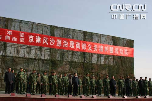北京軍區(qū)、國家林業(yè)局、國家綠化委員會、內(nèi)蒙古軍區(qū)等有關(guān)領(lǐng)導,自治區(qū)黨委副書記、政府代主席巴特爾,自治區(qū)政府副主席郭啟俊,烏蘭察布市黨政領(lǐng)導出席了誓師動員大會。