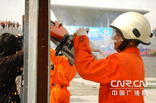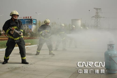 在隨后進(jìn)行的崗位練兵及滅火演習(xí)中,消防官兵表演了佩戴空氣呼吸器、穿著消防戰(zhàn)斗服、氣壓脈沖噴霧水槍滅火、動(dòng)力圓盤鋸和鏈鋸破門、體能訓(xùn)練、油料火撲救等精彩項(xiàng)目,不但贏得了臺(tái)上領(lǐng)導(dǎo)的陣陣掌聲,也使前來觀看的群眾大開眼界。