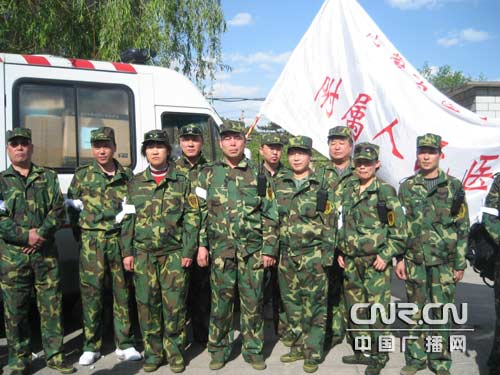 中廣網(wǎng)呼和浩特5月14日消息(記者鄭穎 實習(xí)記者張楠)5月14日下午16時內(nèi)蒙古醫(yī)學(xué)院附屬人民醫(yī)院抗震救災(zāi)醫(yī)療隊整裝待發(fā),奔赴四川災(zāi)區(qū)。醫(yī)療隊共有13名隊員,由內(nèi)蒙古醫(yī)學(xué)院附屬人民醫(yī)院院長助理兼醫(yī)務(wù)科主任趙剛帶隊,據(jù)記者了解到,本醫(yī)療隊將奔赴受災(zāi)最嚴(yán)重的地區(qū)。
