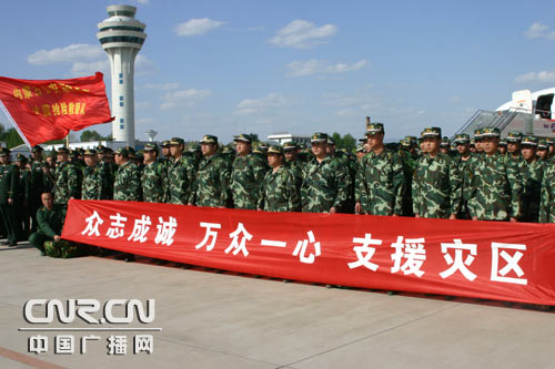 中廣網呼和浩特5月14日消息(記者鄭穎、劉俊霞)今天下午16:30,內蒙古消防總隊150名官兵在呼和浩特白塔機場飛往四川,加入到抗災救災工作當中。內蒙古自治區(qū)副主席任亞平、連輯到機場送行。