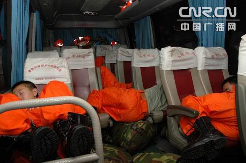 凌晨1時30分,救援隊全體官兵到達綿陽市消防支隊,得到了綿陽市消防支隊領導和官兵們熱情接待。由于綿陽至平武的公路蜿蜒崎嶇,又遭地震大面積損毀,山體滑坡嚴重,不利于夜間行車。同時,考慮到運送官兵的大巴車司機已經連續(xù)幾天沒有合眼、非常疲勞的實際,王秋彧總隊長命令部隊停止前進,在距離平武縣100公里的綿陽市御安街休整,救援隊官兵在馬路邊露宿的3個小時內,不斷有臨街店鋪的老板和群眾熱情地為官兵們提供充電設備等。他們向官兵致以敬意,表示官兵們遠在千里之外奔赴地震災區(qū)開展救援工作,是對災區(qū)人民最大的支持。