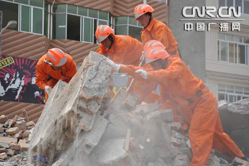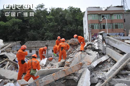 5月16日中午,內(nèi)蒙古消防赴川抗震搶險救援隊(duì)救援工作調(diào)整到鎮(zhèn)內(nèi)兩條街道上的居民區(qū),救援隊(duì)分成35個小組,重點(diǎn)對居民住宅和確認(rèn)有人埋壓的區(qū)域進(jìn)行搜救。