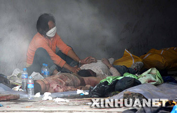 5月15日,木魚(yú)中學(xué)學(xué)生白妤蔓的父母(前)在女兒的遺體前悲痛萬(wàn)分。在汶川地震中,四川省青川縣木魚(yú)中學(xué)275名學(xué)生死亡,30名學(xué)生下落不明。 新華社記者 陶明攝