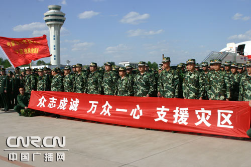 我們150名官兵,懷著內(nèi)蒙古2800萬人民和總隊(duì)3500名官兵的深情囑托,帶著不奪全勝、不完成任務(wù)誓死不回頭的決心和只要一息尚存就不退出陣地的信心,踏上了赴川抗震救援的征途,從登上飛機(jī)的那一刻起,我們的戰(zhàn)士一直斗志高昂,心情迫切,恨不得立即趕到災(zāi)區(qū),幫助災(zāi)區(qū)人民渡過難關(guān)。我們很多戰(zhàn)士都是第一次坐飛機(jī),那些平素里美麗端莊優(yōu)雅得近乎高傲的空姐,在飛機(jī)上不停地與我們這些老實(shí)得近乎傻氣的戰(zhàn)士打招呼、合影,這些常年在水里火里打拼的戰(zhàn)士,平時(shí)只知道攀墻躍架,哪見過這陣勢,略顯靦腆。我想,別說這些展示了,即便是我們,在平時(shí)也根本沒有機(jī)會與空姐合影,是因?yàn)槲覀円闳槐几翱拐鹁仍痪的行動(dòng),才得到了那么多人的尊敬。只有英雄才會與美麗結(jié)緣。