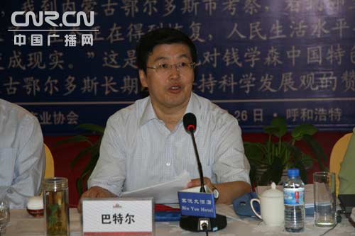 巴特爾代表黨委、政府在會(huì)上講話,強(qiáng)調(diào)胡總書記的談話意義重大,他說,“這既是對(duì)錢老沙產(chǎn)業(yè)創(chuàng)新理論的贊揚(yáng),也是對(duì)內(nèi)蒙古堅(jiān)持科學(xué)發(fā)展觀的肯定”;“沙產(chǎn)業(yè)在內(nèi)蒙古是一項(xiàng)具有戰(zhàn)略意義的產(chǎn)業(yè),是造福人民、促進(jìn)可持續(xù)發(fā)展的大事”。請(qǐng)專家們?yōu)閮?nèi)蒙古沙產(chǎn)業(yè)的科學(xué)發(fā)展獻(xiàn)計(jì)獻(xiàn)策。