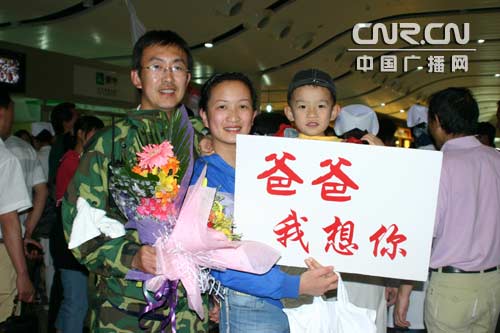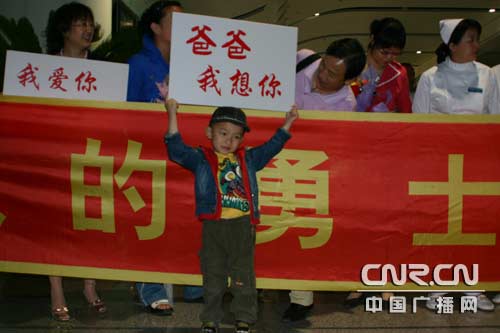 在候機(jī)廳內(nèi),一位迎接親人的小朋友引起了眾多媒體的注意,據(jù)了解,他的父親是本次前往前線的醫(yī)療救援隊的隊員,他拿著自己做的牌子,希望能給爸爸一個驚喜。