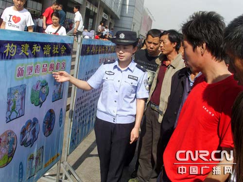 宣傳活動采取廣播、懸掛條幅圖片、張貼禁毒公告、發(fā)放傳單、設(shè)立宣傳臺、法律咨詢臺、組織秧歌隊(duì)表演等形式,向過往旅客講解毒品危害性等知識,宣傳黨和政府的禁毒方針、政策,提高了廣大旅客對毒品危害的認(rèn)知度,并教育廣大旅客群眾遠(yuǎn)離毒品,堅(jiān)決同毒品犯罪行為作斗爭;顒悠陂g,設(shè)立宣傳板21塊,張貼禁毒公告15張,包頭鐵路公安處及廣場巡邏隊(duì)共出動警力25人次,接受法律咨詢260余人次,發(fā)放宣傳資料3600余份,受教育旅客群眾達(dá)5000余人。