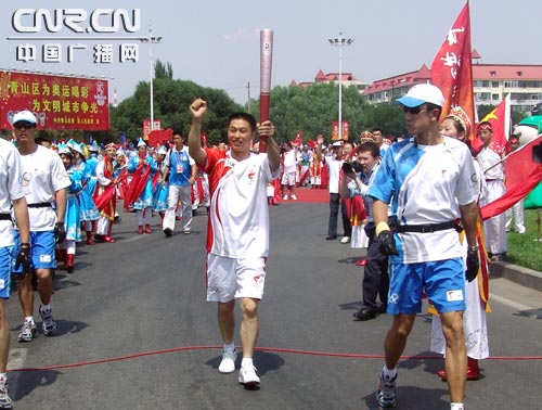 費(fèi)三江是包頭市火炬?zhèn)鬟f的第二棒火炬手
