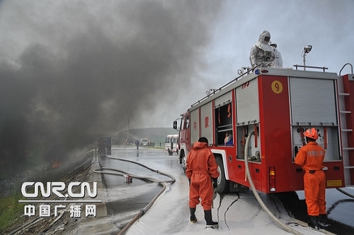 | 中廣網(wǎng)呼和浩特7月28日消息(記者鄭穎 通訊員馮常財) 7月28日上午9時31分,蒙黑兩地多警種跨區(qū)域滅火救援聯(lián)合實戰(zhàn)演習在內(nèi)蒙古呼倫貝爾市阿榮旗通往廣西北海的省際大通道21公里處成功舉行。這是內(nèi)蒙古自治區(qū)與黑龍江省首次消防區(qū)域協(xié)作,也是北京奧運會前的一次規(guī)模較大的跨區(qū)域?qū)崙?zhàn)滅火救援演習。