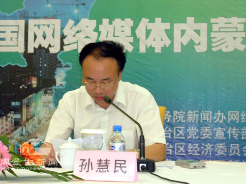 內(nèi)蒙古自治區(qū)政府副秘書長、內(nèi)蒙古自治區(qū)政府新聞發(fā)言人孫慧民代表中共內(nèi)蒙古自治區(qū)黨委、內(nèi)蒙古自治區(qū)人民政府,向出席今天活動的中央外宣辦、中央重點新聞網(wǎng)站、兄弟省市重點新聞網(wǎng)站、知名商業(yè)網(wǎng)站的各位朋友們表示熱烈的歡迎和誠摯的問候!他指出:近年來,內(nèi)蒙古自治區(qū)全面貫徹落實科學發(fā)展觀,抓住國家實施西部大開發(fā)和振興東北地區(qū)等老工業(yè)基地戰(zhàn)略機遇,加快改革開放和現(xiàn)代化建設(shè)步伐,經(jīng)濟社會發(fā)展實現(xiàn)了重大跨越。自治區(qū)成立60年以來,特別是改革開放30年來,隨著國民經(jīng)濟的快速發(fā)展和綜合經(jīng)濟實力的逐步增強,人民生活總體上實現(xiàn)了由溫飽向小康的歷史性跨越,并向著建設(shè)全面小康社會的宏偉目標邁進。內(nèi)蒙古已經(jīng)具備了許多構(gòu)建和諧社會的有利條件。