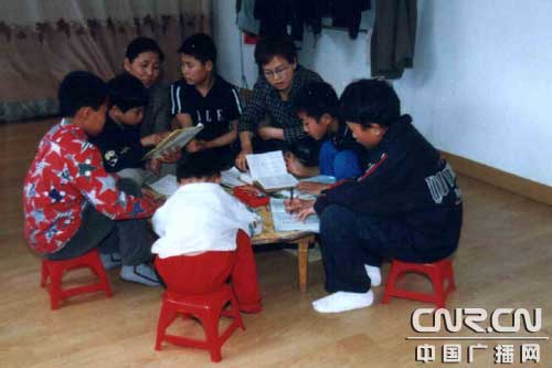尹福老師輔導(dǎo)孩子們學(xué)習(xí)
