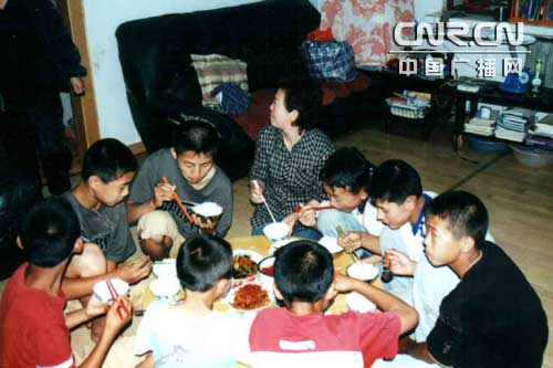 在第24個(gè)教師節(jié)來(lái)臨之際,記者對(duì)她的家人進(jìn)行了一次特殊的采訪,因?yàn)椴稍L時(shí)主人公尹福和她的丈夫應(yīng)邀去深圳出差不在家。接待記者的是尹福老師的妹妹尹胡蘭和尹老師的女兒鄭玉順,還有最小孩子??12歲的非常有禮貌的男孩兒(智障)尹恩生。尹胡蘭因?yàn)榻憬愫徒惴蛲瑫r(shí)出差,而現(xiàn)在孩子們都已經(jīng)開(kāi)學(xué)了,需要有人給孩子們做飯和看管他們,所以尹胡蘭就立即放下自己《扎蘭屯市百拇養(yǎng)生館》的生意,趕到成吉思汗鎮(zhèn)姐姐家?guī)兔ΑRm微笑著說(shuō)她很喜歡這些孩子,因?yàn)榻憬惆阉麄兘逃枚隆Ⅲw貼、上進(jìn)、優(yōu)秀,使每個(gè)見(jiàn)了他們的人都喜歡。尹胡蘭談起尹福老師收養(yǎng)孤兒這12年中的難忘故事時(shí)說(shuō):“難忘的事情多得象星星,實(shí)在是數(shù)也數(shù)不清;姐姐的艱辛付出得太多了,同樣善良的姐夫也付出了很多。孩子們小的時(shí)候都是姐姐用雙手給孩子們洗涮、姐夫鄭三俊給孩子們燒鍋爐幫做飯。姐姐好多次因?yàn)橄刺嗟谋粏味央p手的手脖子骨頭累得同時(shí)凸出來(lái)、疼得叫起來(lái),眼淚滾下來(lái),也從此落下了病根,現(xiàn)在雙手不能拿重東西。能把這些孩子撫育健康長(zhǎng)大、成為對(duì)社會(huì)有用的人就是姐姐和家人最大的滿(mǎn)足!痹诩胰搜劾,雖然起初不太理解姐姐的做法,因?yàn)槟菚r(shí)姐姐一邊工作一邊做買(mǎi)賣(mài),而且有存款?墒12年來(lái)為了撫養(yǎng)這些全是男孩兒的孤兒,尹福老師花掉了自己30多萬(wàn)元的全部積蓄。尹老師家每頓燜米飯都要5、6碗大米,吃飯時(shí)都是兩桌子,在外人看起來(lái)不象家庭倒象飯店,F(xiàn)在這些孩子長(zhǎng)大了,都挺起了各自的職責(zé),他們輪流燒火、掃地、洗菜、刷碗。