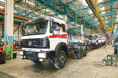 在北奔重汽公司總裝車間,工人們正在緊張地忙碌著。生產(chǎn)線已連續(xù)幾個(gè)月處于滿負(fù)荷狀態(tài),即使一線工人兩班倒,目前收到的訂單也已安排到7月底。作為國內(nèi)高檔重車的知名品牌,北奔重汽公司已經(jīng)連續(xù)3年保持了快速增長行業(yè)之最。