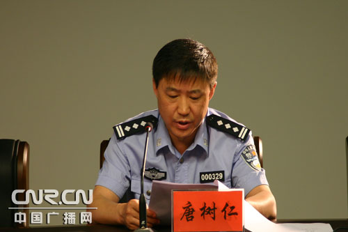 內(nèi)蒙古自治區(qū)公安廳禁毒總隊(duì)辦公室主任唐樹仁在發(fā)布會(huì)上發(fā)言(攝影 王芳)