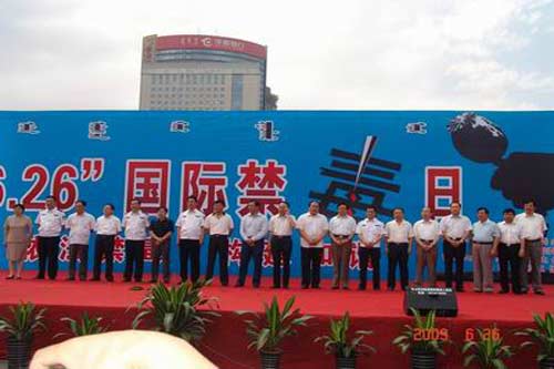 今天在首府新華廣場(chǎng)舉行了“依法禁毒,構(gòu)建和諧”為主題的宣傳活動(dòng),目的是為了讓廣大青少年深刻了解禁毒的重大意義,以及毒品對(duì)國(guó)家、社會(huì)和家庭的嚴(yán)重危害,從而在今后的學(xué)習(xí)和工作中能真正做到“真愛生命,拒絕毒品”。