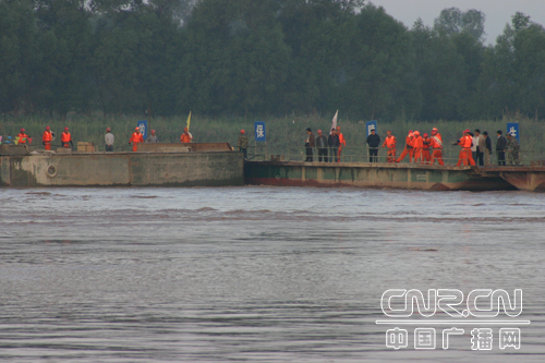 中廣網(wǎng)呼和浩特8月27日消息(記者鄭穎 攝影馬立峰) 8月26日下午15時41分左右,在托縣黃河?xùn)|營段發(fā)生一起機船與黃河浮橋相撞事故,機船傾覆,15人全部落入黃河,截至目前已從黃河內(nèi)打撈搜救7人,陸續(xù)送往托縣醫(yī)院及時進行搶救,其中,已有6人脫離危險,1人經(jīng)搶救無效死亡,其余8人失蹤。由于黃河水流湍急,,給救援工作帶來很大難度,目前,沉船還沒有打撈出水。今晨5點半,消防救援人員嘗試拆除浮橋打撈沉船。