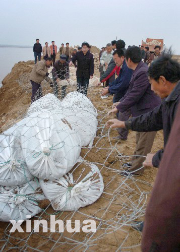 3月21日下午,黃河內(nèi)蒙古準(zhǔn)格爾旗李三壕河段出現(xiàn)流凌淘岸險(xiǎn)情。當(dāng)?shù)胤姥床块T動(dòng)用260多人和140余輛汽車、工程車日夜搶險(xiǎn)。目前淘岸險(xiǎn)情得到初步控制。 新華社記者 任軍川攝